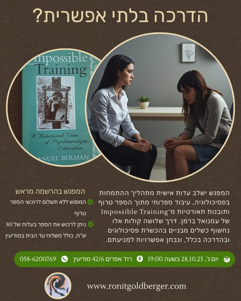 ניתן להזמין הרצאה. המפגש מתאים לאנשי מקצוע, מתמודדים ובני משפחה, ולקהל הרחב.